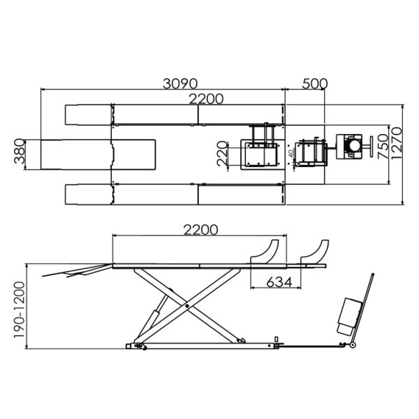 900kg Lifting Capacity Scissor Motorcycle Lift With Single Cylinder Hydraulic Driven